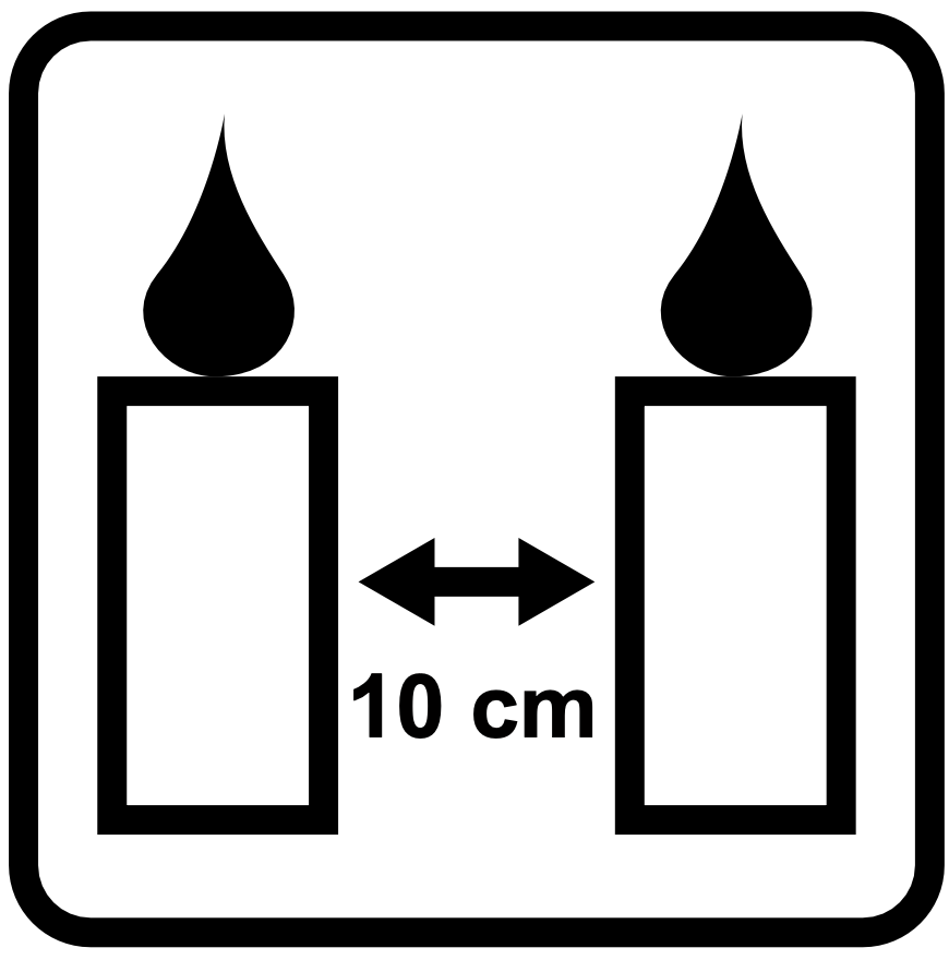 Sicherheitsabstand zwischen brennenden Kerzen beachten.